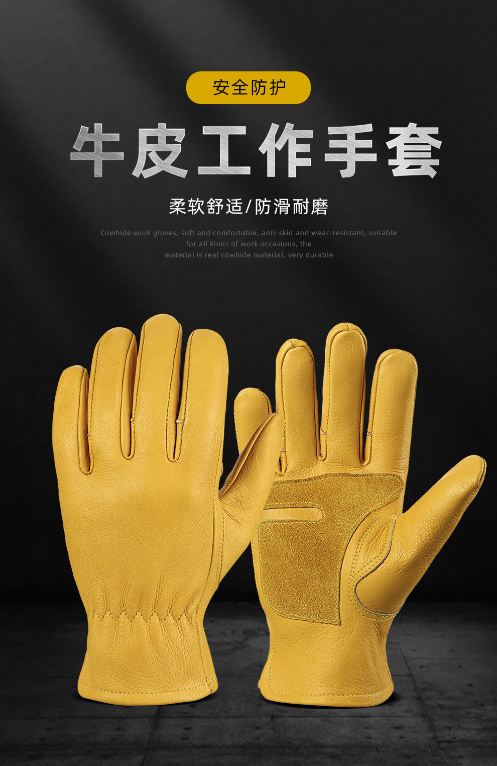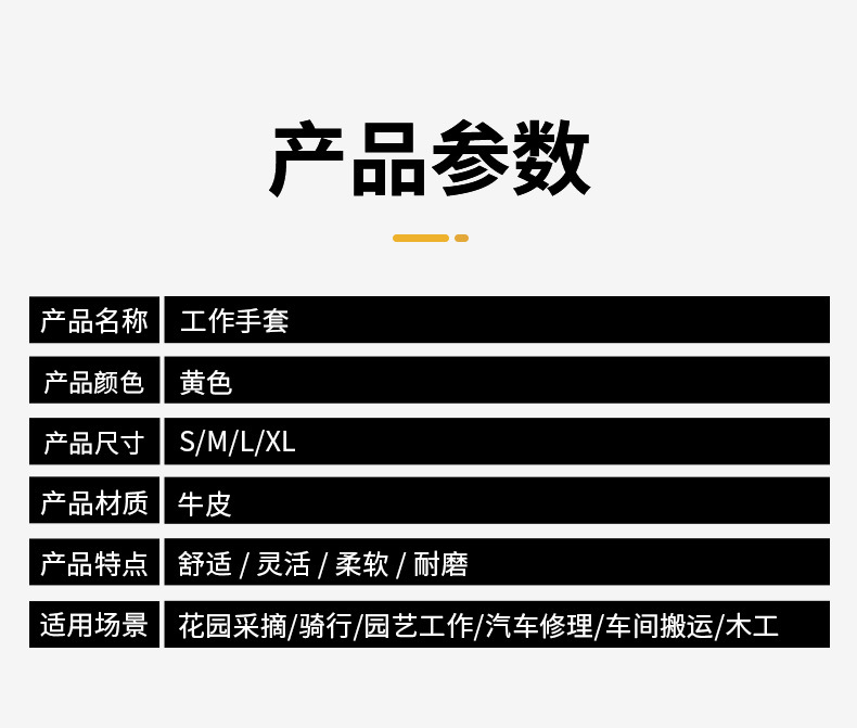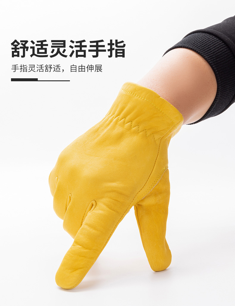 跨境牛皮劳保手套柔软防滑耐磨亚马逊工作汽...