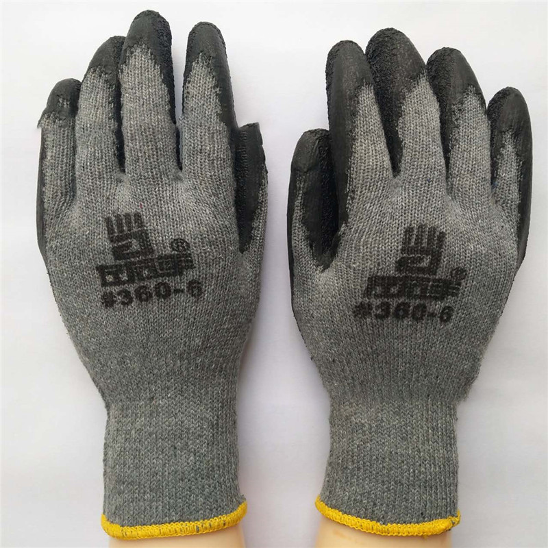 左右手360-6灰纱黑乳胶皱纹手套 粗纱...